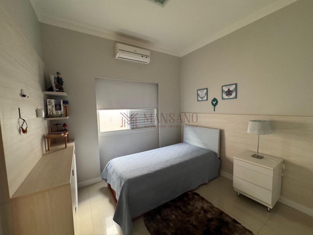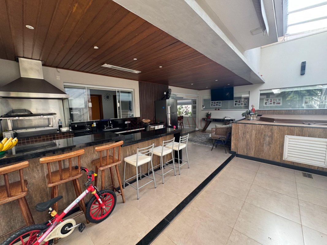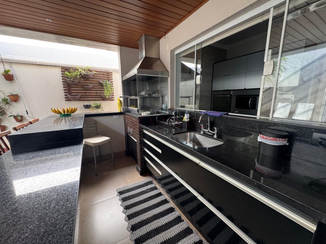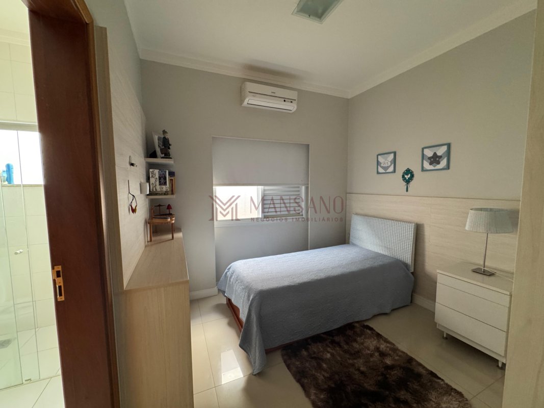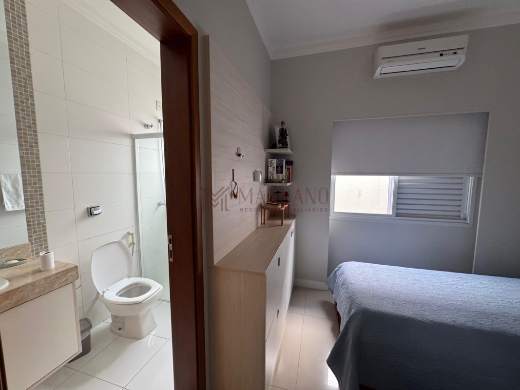 A casa está localizada no bairro Vila Aviação, no condomínio Villaggio III, possui 220 m², 3 quartos, sendo 3 suítes, 4 banheiros e 4 vagas.