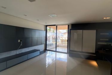 No pavimento superior, uma sala de TV acolhedora oferece o contraponto perfeito entre convivência e intimidade. Já o mezanino abriga ainda escritório, lavabo e apoio funcional, ideal para quem equilibra vida pessoal e produtividade com elegância.